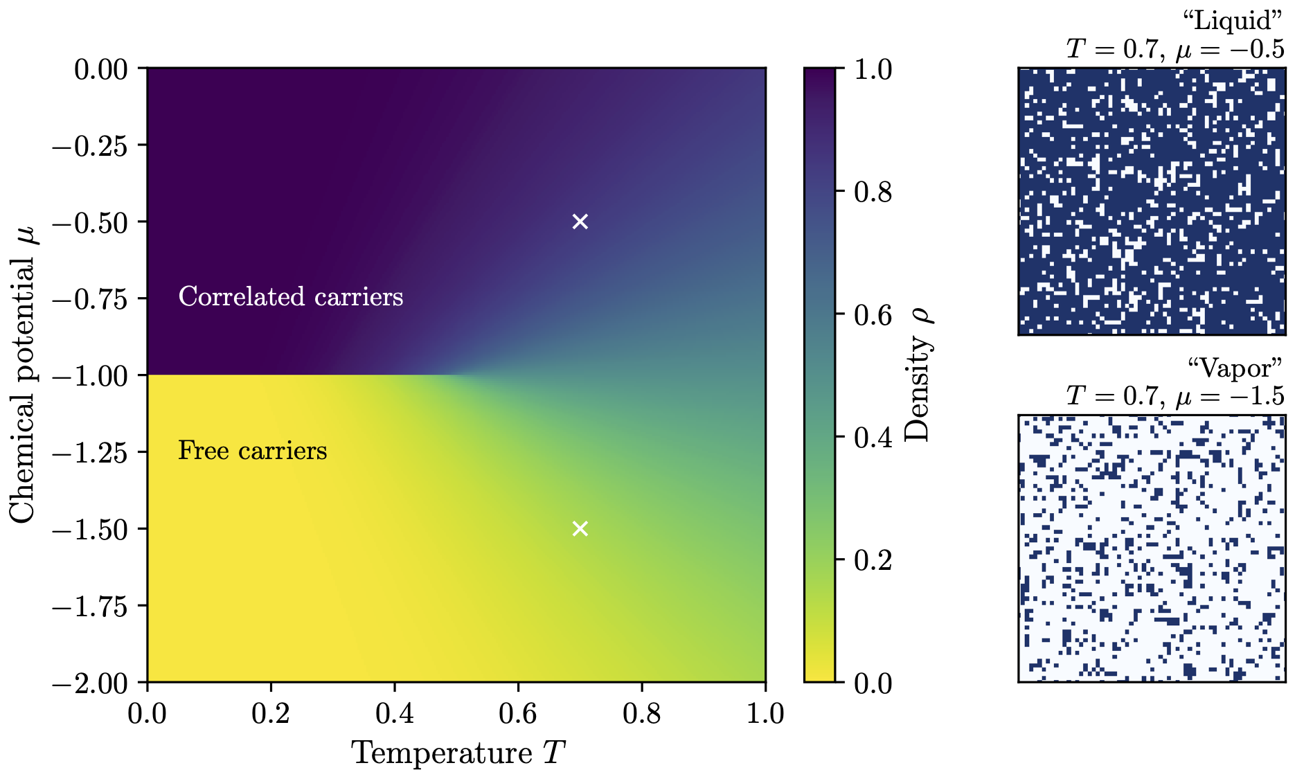By systematically varying temperature and chemical potential, we can construct the phase diagram shown above. The results reveal two distinct regimes: